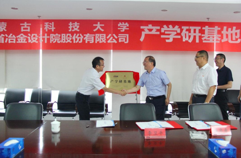 2020年6月29日,山冶設(shè)計(jì)與內(nèi)蒙古科技大學(xué)“產(chǎn)學(xué)研”基地簽約儀式在高新區(qū)辦公樓舉行。內(nèi)蒙古科技大學(xué)能源與環(huán)境學(xué)院黨總支書記李衛(wèi)平一行4人,公司董事長(zhǎng)魏新民,黨委書記谷卓奇及相關(guān)科室人員共同出席了簽約儀式。